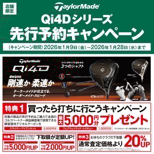 TaylerMade「Qi4Dシリーズ」先行予約キャンペーン!